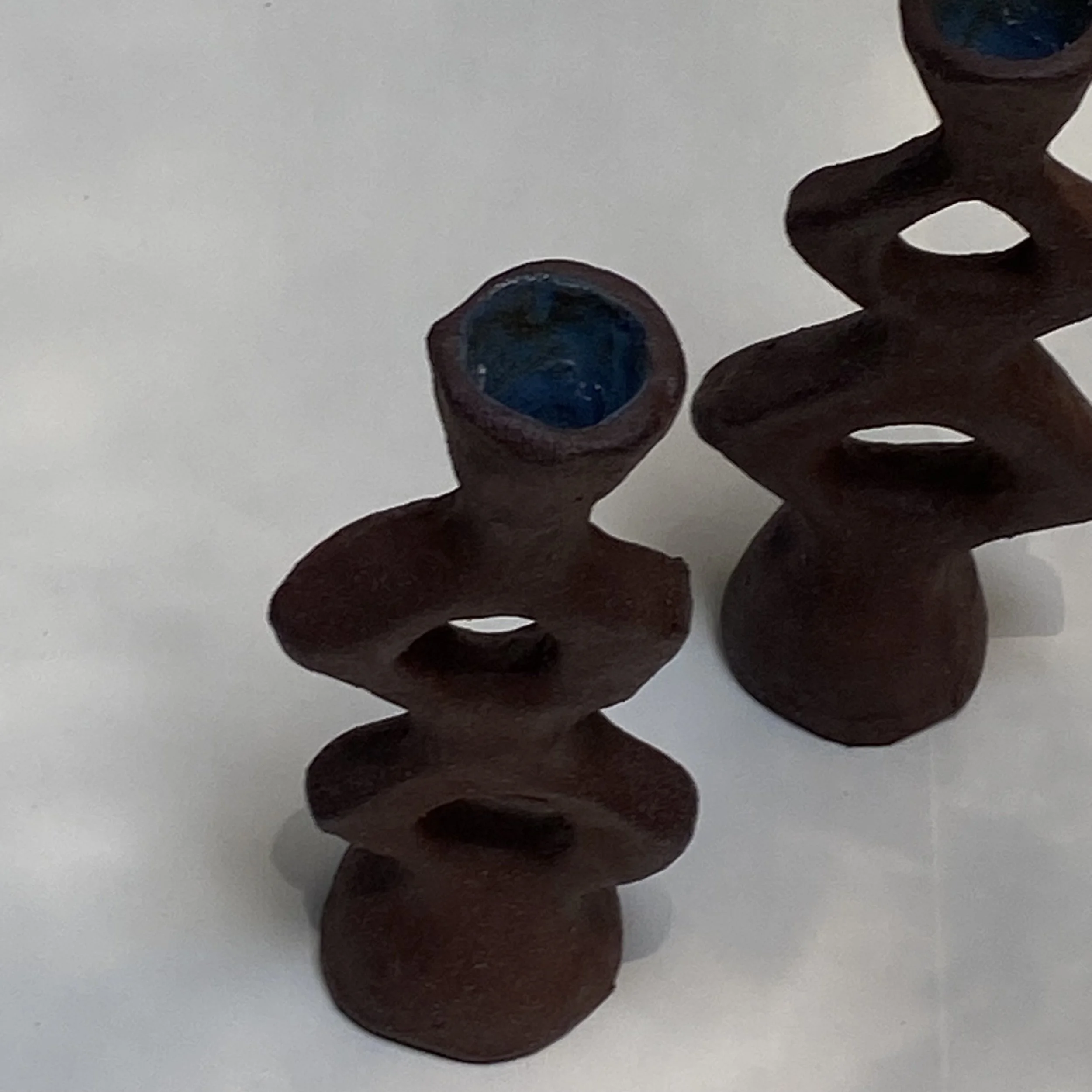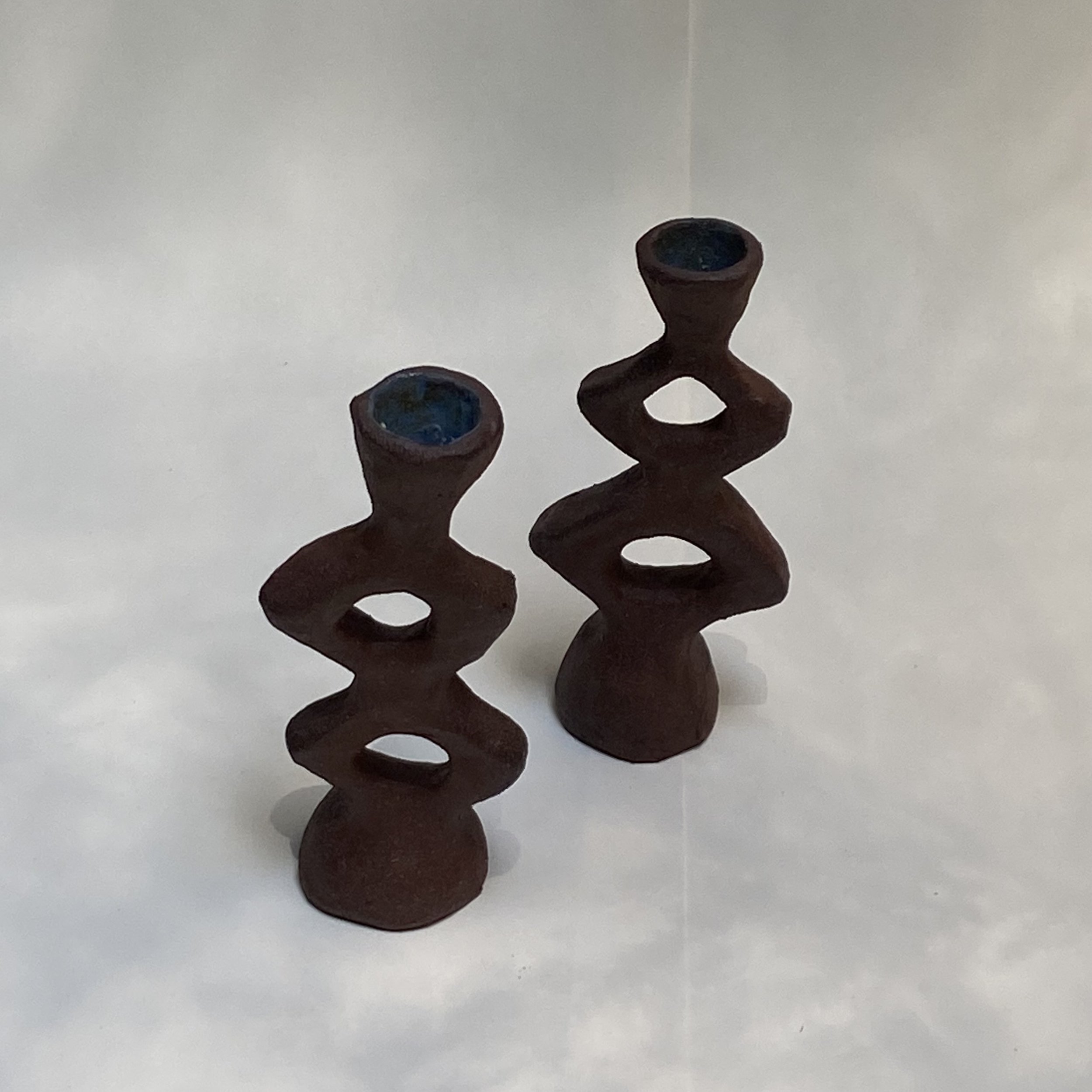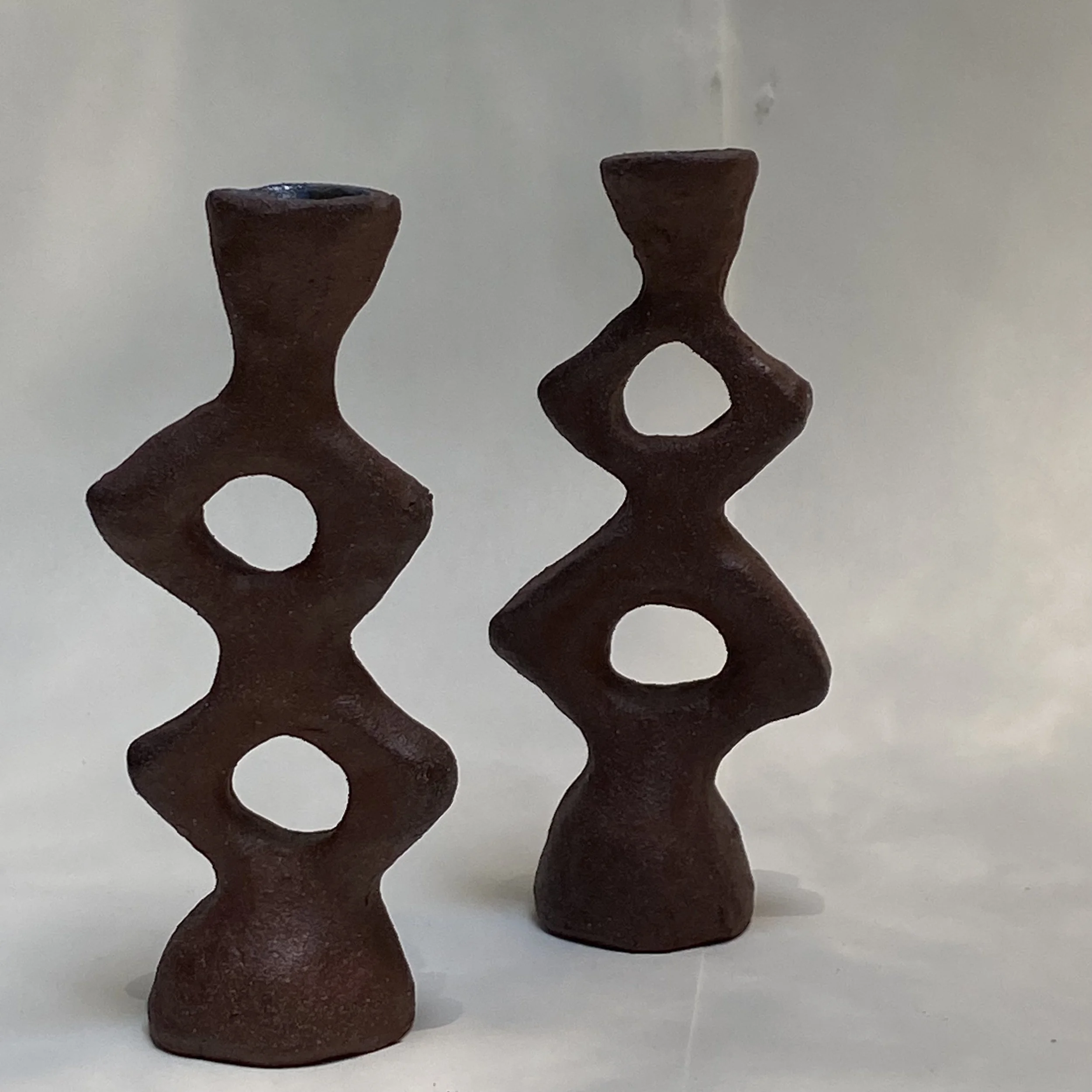 this candle holder is from a series of pieces originally inspired by Brancusi endless tower, made with a self processed and harvested wild clay from a cliff on Pfeiffer beach in Big Sur.