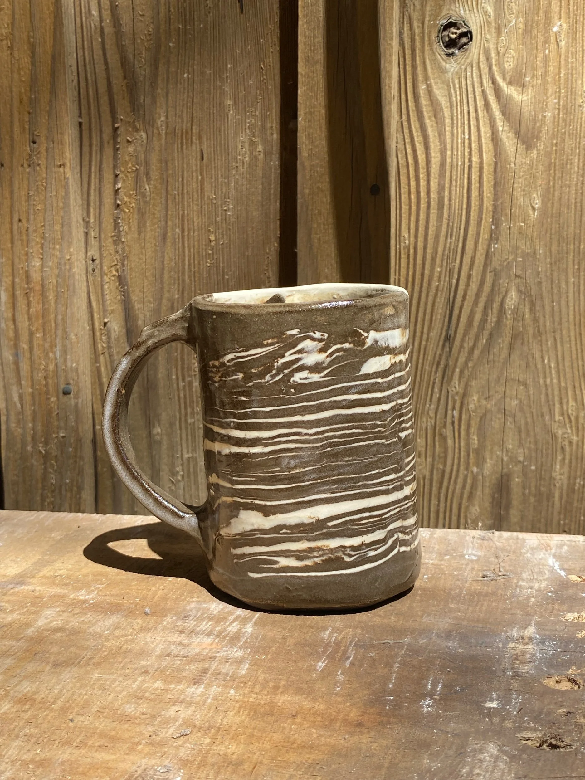 Shop › Marble mug Image 1 of 3 Image 2 of 3 Image 3 of 3 Marble mug $70.00 Horizontal marble Nerikomi mug withAbout 10 liquid oz Add To Cart Added! Horizontal marble Nerikomi mug withAbout 10 liquid oz