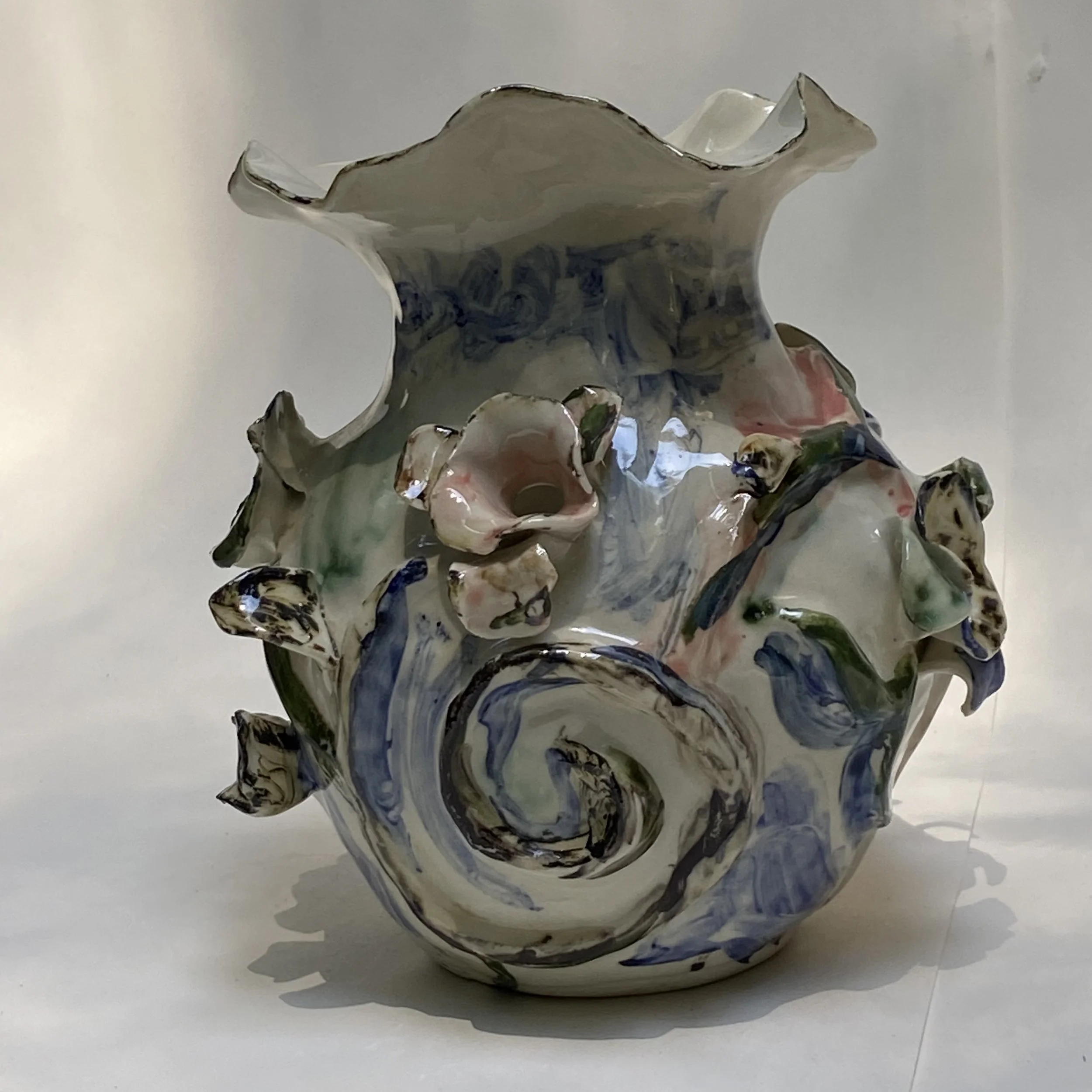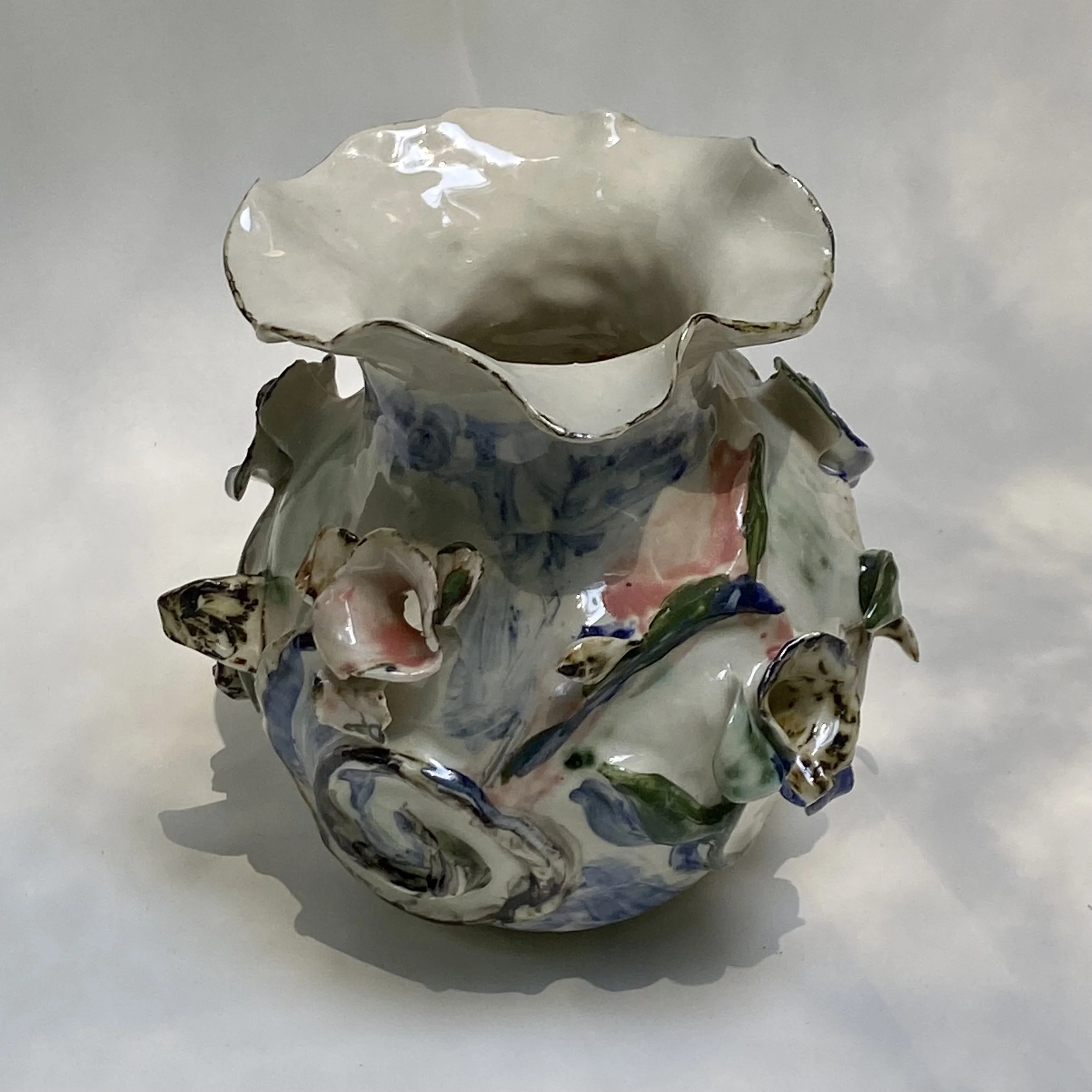 Shop › painted tulipier Image 1 of 8 Image 2 of 8 Image 3 of 8 Image 4 of 8 Image 5 of 8 Image 6 of 8 Image 7 of 8 Image 8 of 8 painted tulipier $630.00 one of a kind, hand built in white stoneware, gloss glaze and underglazed with homemade washes.8” tall Add To Cart Added! one of a kind, hand built in white stoneware, gloss glaze and underglazed with homemade washes.8” tall