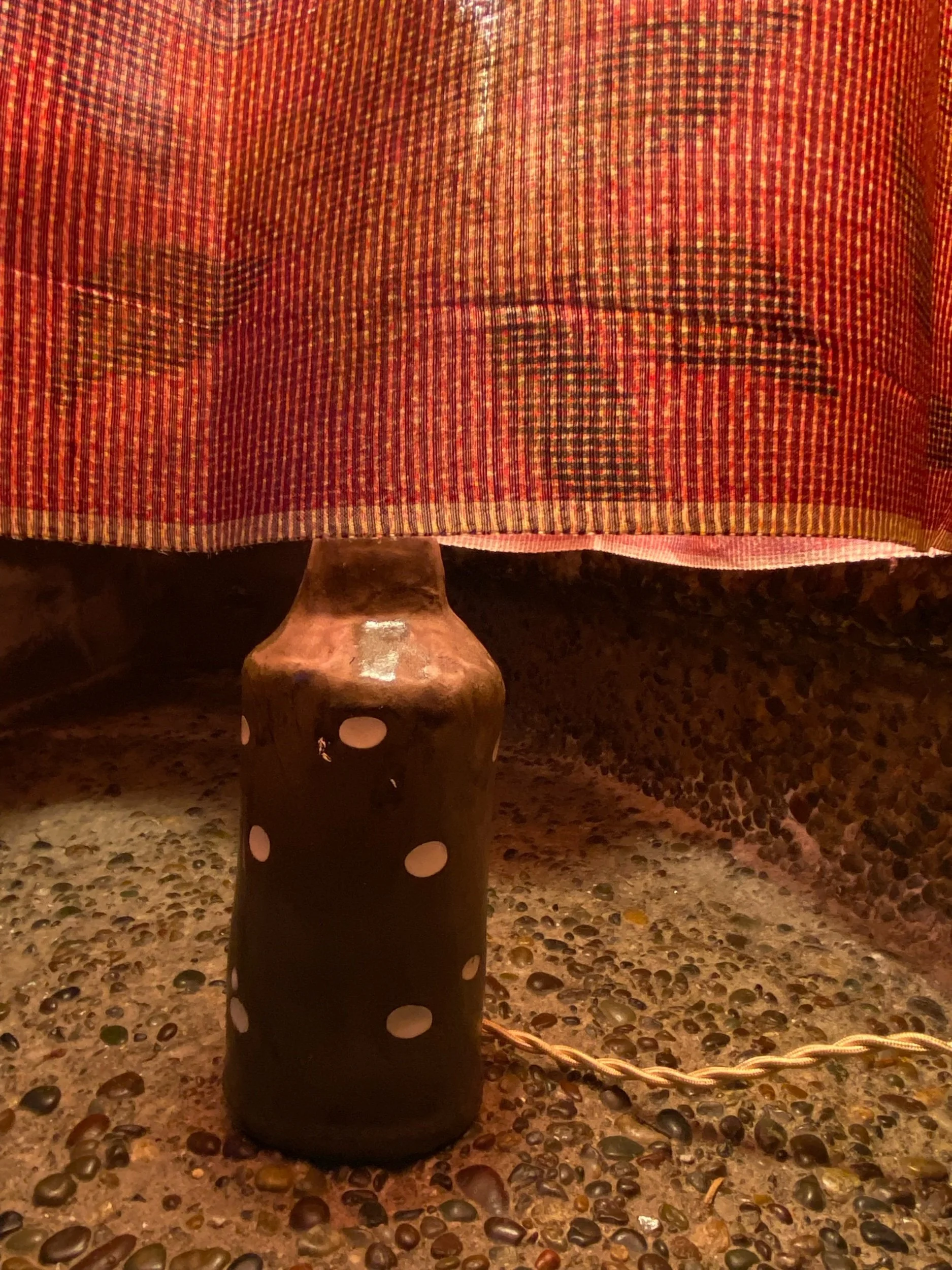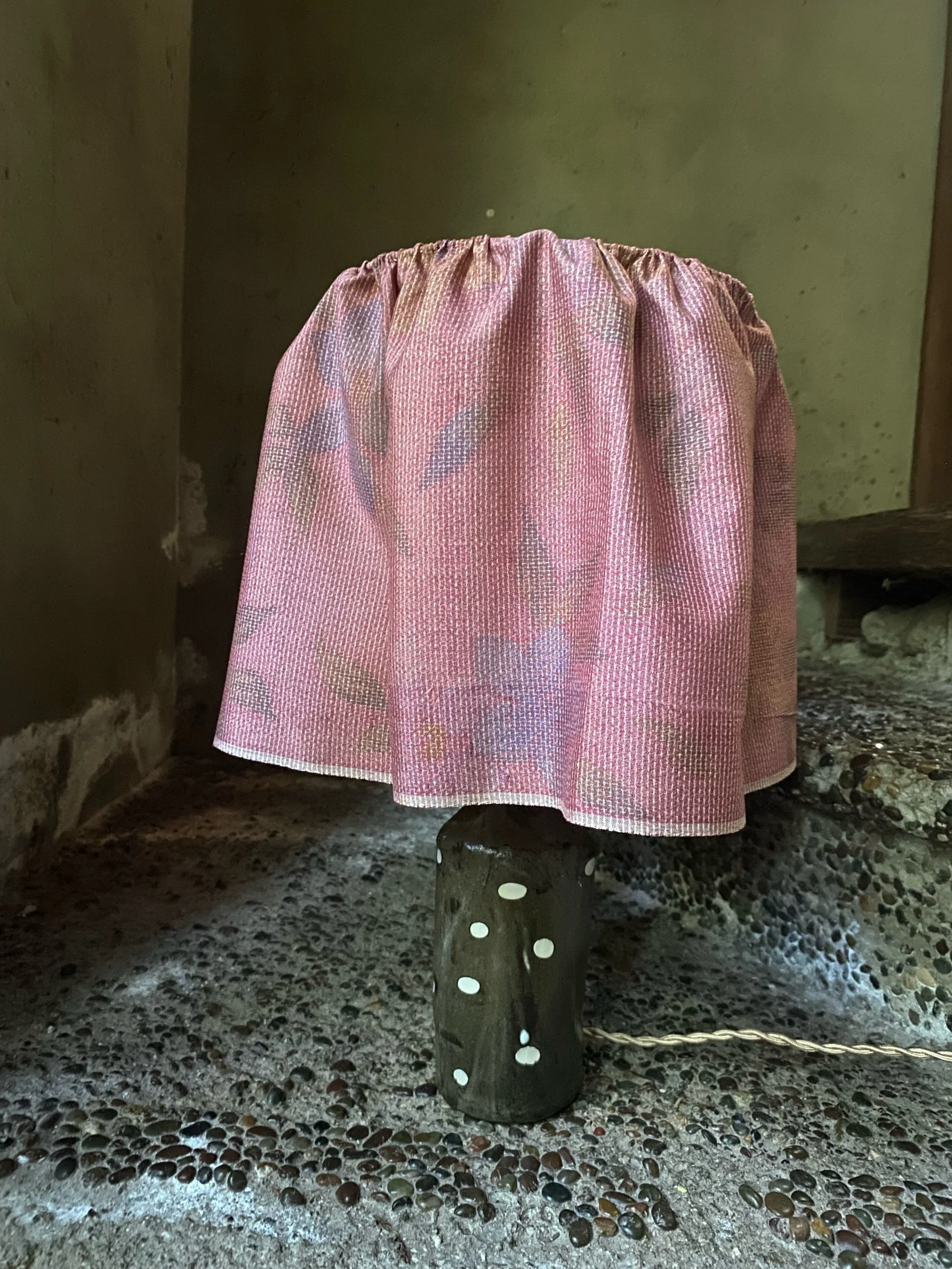 The shade is hand sown vintage silk scrap from Japan.